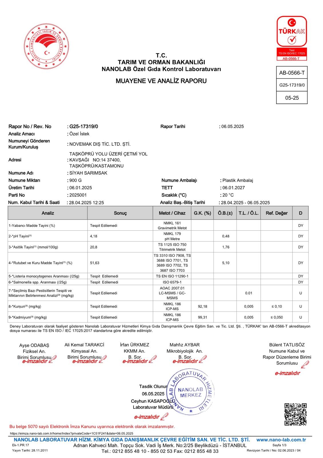 2025 Yılı Siyah Sarımsak Analizi